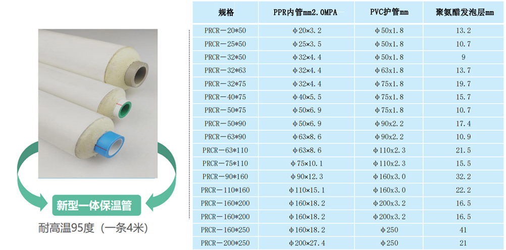 新型PPR保溫管采用聯塑PPR熱水內芯管+聚氨酯發泡保溫層+PVC(PE)外套保護層,三層緊密閉合,中間無縫隙、無空氣層,保溫效果極優。